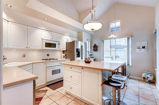 Nestled in the upper level of the Complex, this rarely found “Duplex Style” Town home proudly features great, adorable layout with Vaulted ceilings, abundant sunshine from all windows and skylights, Master Bdrm on the main and 2 perfect size Bdrms inter-connected each other by a bridge-like-corridor over looking downstairs from both sides in the upper floor, 3 bathrooms, 2 gas f/p, a 2 car garage with plenty of storage spaces. The kitchen/eating area opens to the family room with sliding doors leading out to a private patio backing onto a green belt. A covered cozy & private sundeck upstairs is a bonus. This privately gated community is close to parks,hiking trails,skiing,golf,shopping and schools.